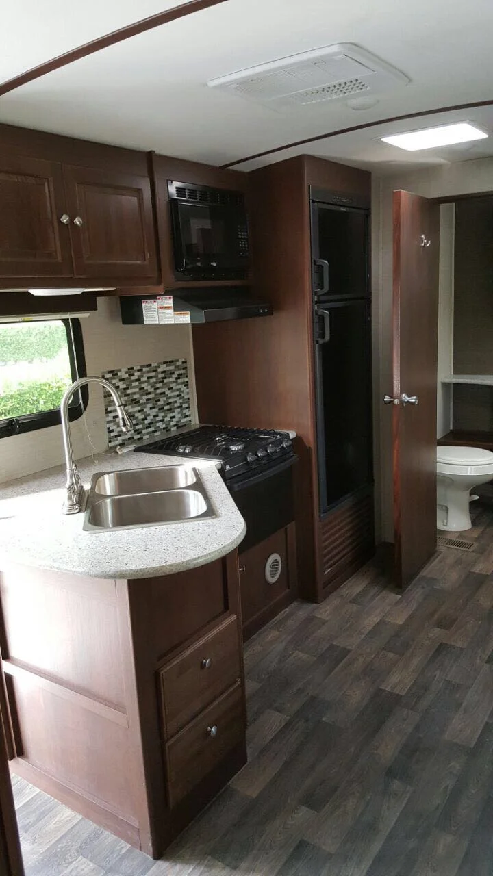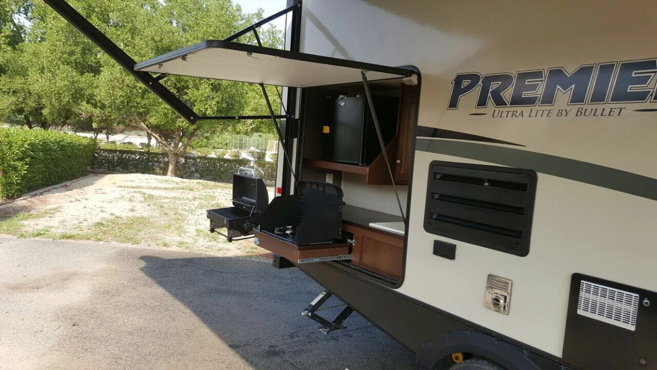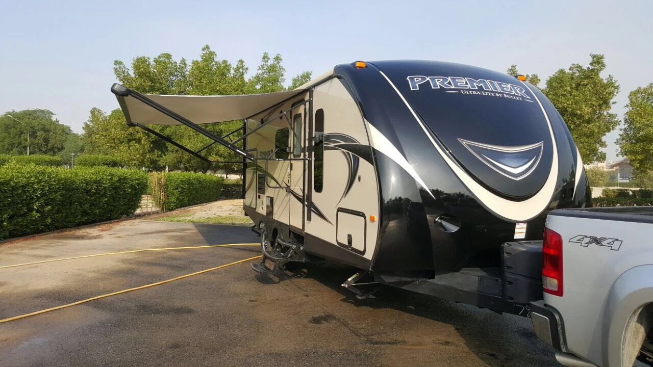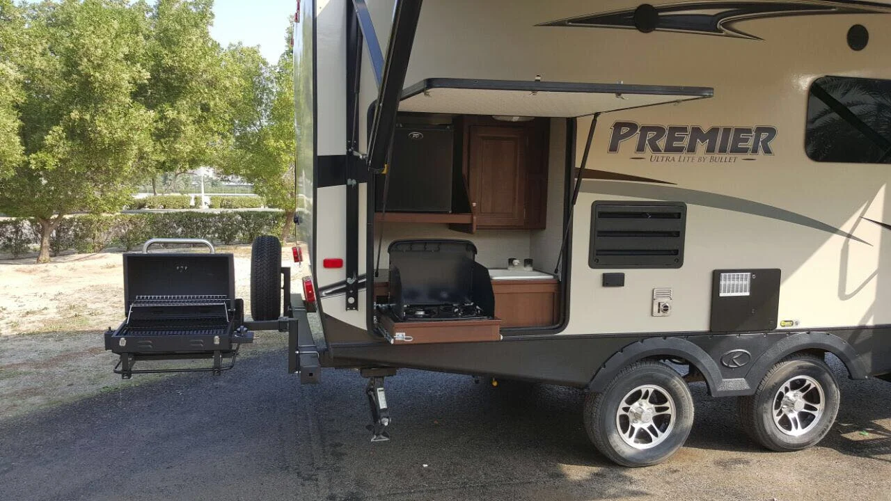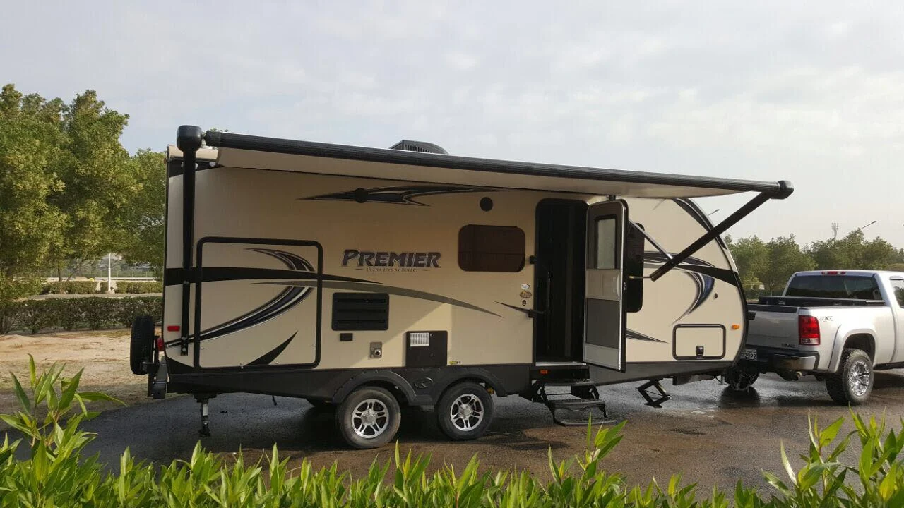 كرافان ماركة كي ستون مؤثث بالكامل موديل بريميير بوليت ٢٠١٥ ،٢٢ بي آر بي بحالة ممتازة . حجم الكرفان من الداخل ٢٢ قدم ومن الخارج ٢٤ قدم. يحتوي على غرفة نوم وحمام مع شاور وصالة مع تلفزيونين ومطبخ مجهز بثلاجة ومايكرويف وطباخ