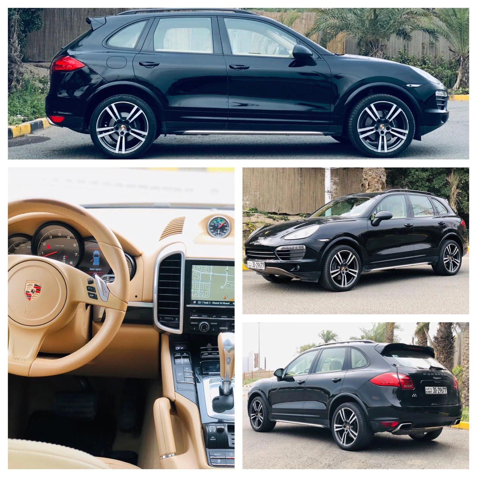 جيب بورش كايين 6 سلندر بلاك اديشن موديل 2014 ماشي 111 الف وارد بهبهاني اللون اسود / جلد بيج سقف بانوراما ساعه كرونو رنقات تيربو حجم 21 انش شاشتين نفجيشن كاميرا خلفيه سنسر تحكم بالسكان جير بي دي كي تبترونك 8 غيار وصله ايواكس ويو اس بي اضاءه داخليه زنون ستاير جانبيه زنون متحرك مع السكان لوقو بورش على الكشنات السعر 8500 دك تلفون 65641162
