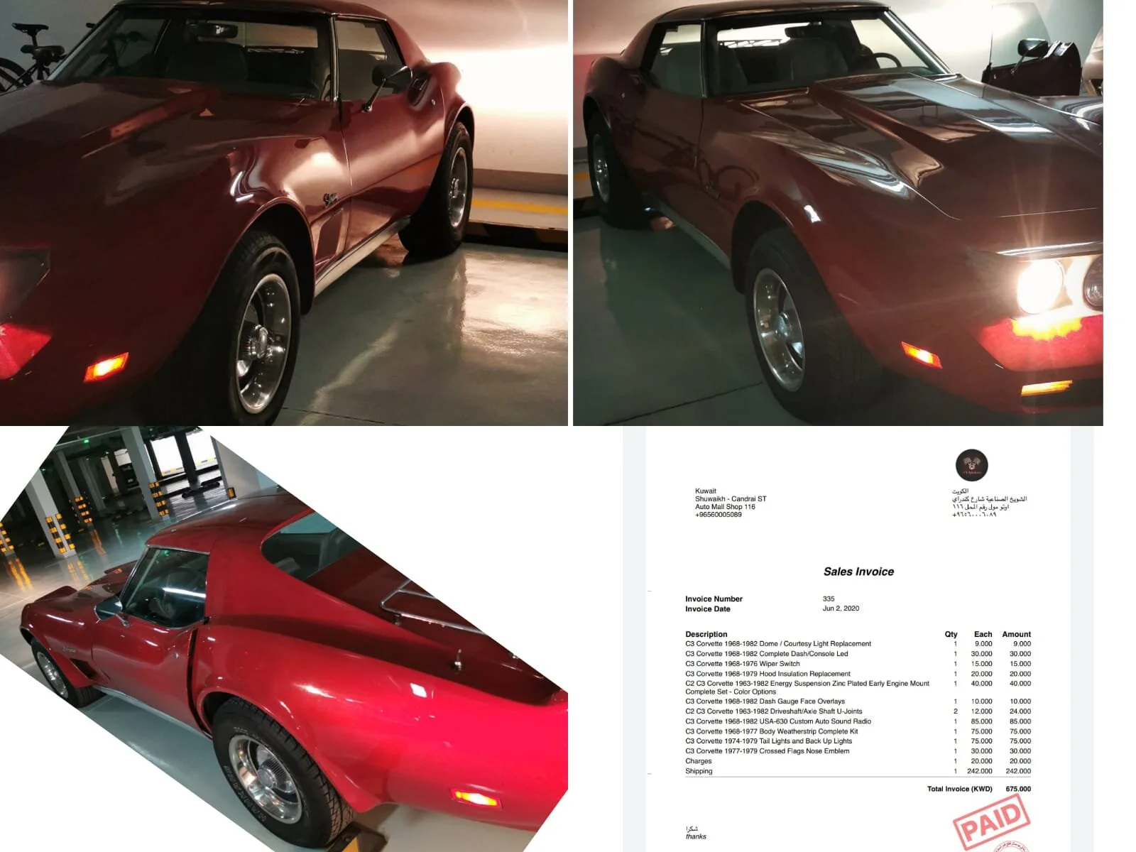 للبيع كورفيت استنقري ٧٦ بحاله جيده جدا تم عمل سيرفر كامل مكينه الأصليه ٣٥٠ استاندر مكيف ثلج تبارك الرحمن حراره ربع ما شاء الله تواير يدد من الأخر الساريه مو ملعوب فيها نهائي طالب لها أغراض من امريكا / والفاتوره موجوده مع البيعه إذا حاب اتجدد بسياره قمية الأغراض ٦٧٠ دينار يا خوان السياره نظيفه مو ملعوب فيها ورجاء الشراي حياه الله السعر/ ٥٥٠٠ ت/ 60605557