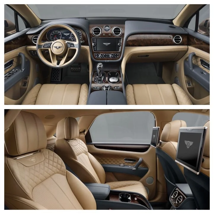 W-12 الذي يدفع السيارة ب 600 حصان توربو مزدوج. بثماني سرعات أوتوماتيكية الدفع بالعجلات الأربع. الداخلية يمكن تهيئتها لأربعة أو خمسة اشخاص. مجهزة بأجود أنواع الجلود والخشب المدلل وسيتم تقديم المحركات الهجينة في المستقبل؛ وBentayga تنزل بالأسواق في أوائل عام 2016.